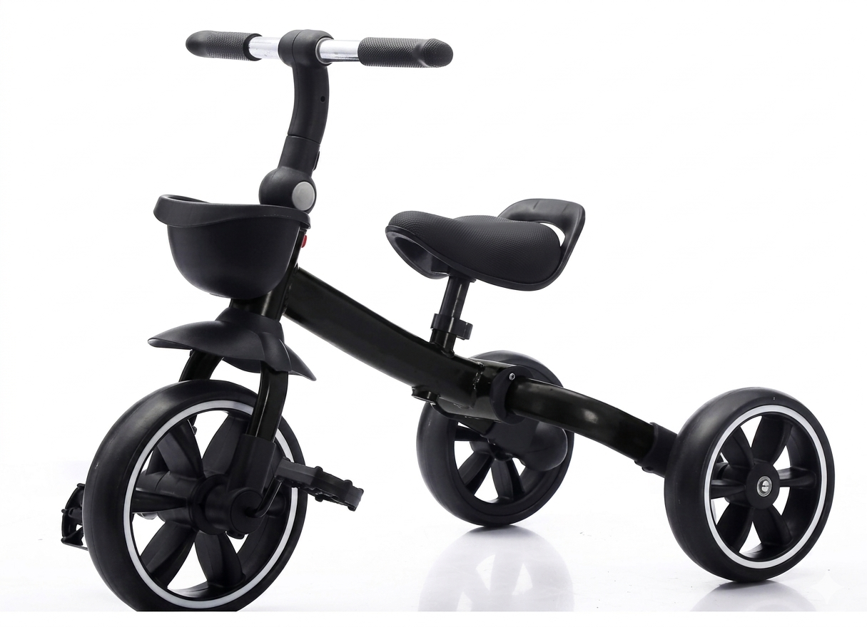 Mogućnost lake tranformacije iz tricikla na pedale u balans bajk (zadnji točkovi se mogu rotirati ka unutrašnjosti pritiskom na dugme)