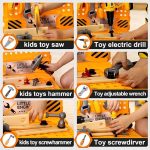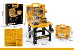 Ovaj set od 98 delova za dečju radnu klupu sadrži sve što vam je potrebno, uključujući 1 kutiju za alat, 1 građevinski prsluk, 1 električnu bušilicu, 1 čekić, 1 podesivi ključ, 1 klešta, 1 mašinski stegac, 1 ručnu testeru, 1 metar, 1 šrafciger, 4 ploče za zaključavanje, 12 kukica i razne delove, eksere, šrafove, navrtke itd.! Sve je potpuno funkcionalno i realistično, a vaše dete će biti zauzeto igrom sa raznim igračkama alatima.