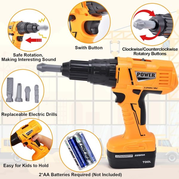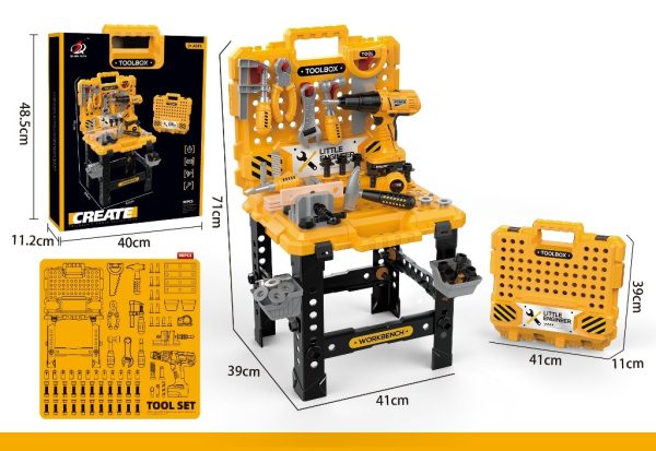 Ovaj set od 98 delova za dečju radnu klupu sadrži sve što vam je potrebno, uključujući 1 kutiju za alat, 1 građevinski prsluk, 1 električnu bušilicu, 1 čekić, 1 podesivi ključ, 1 klešta, 1 mašinski stegac, 1 ručnu testeru, 1 metar, 1 šrafciger, 4 ploče za zaključavanje, 12 kukica i razne delove, eksere, šrafove, navrtke itd.! Sve je potpuno funkcionalno i realistično, a vaše dete će biti zauzeto igrom sa raznim igračkama alatima.
