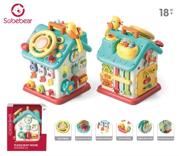 Zabavna i edukativna igračka koja podstiče istraživanje i učenje kroz igru! Kućica sadrži brojne interaktivne funkcije — volan sa sirenom, simulaciju pokretanja ključa, zaključavanje i otključavanje vrata, šrafove za uparivanje, podešavanje sata i uključivanje napajanja. Svetlosni i zvučni efekti dodatno privlače pažnju i razvijaju koordinaciju i radoznalost kod dece.