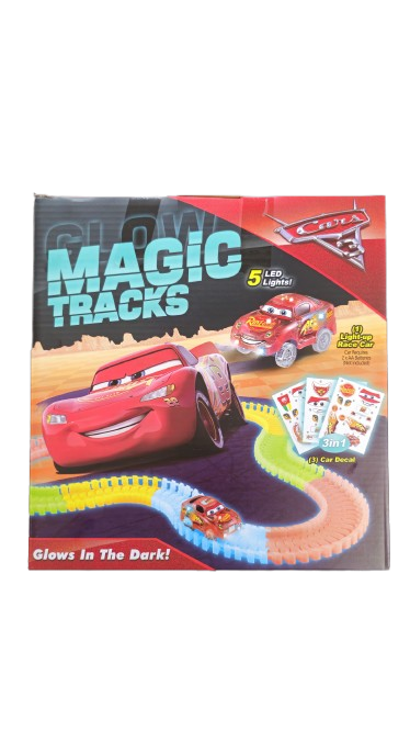 Cars magična staza – Glow Track donosi zabavu i u mraku! Set sadrži 220 delova za sklapanje staze, jedan svetleći autić na baterije i tri Cars nalepnice. Staza i autić svetle u mraku, a fleksibilni delovi omogućavaju različite oblike i kombinacije.