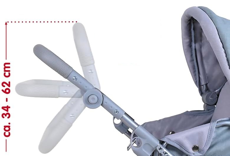 Klizač podesiv po visini sa mekim premazom (približno 34 – 62 cm) omogućava da se kolica koriguju prema visini dece