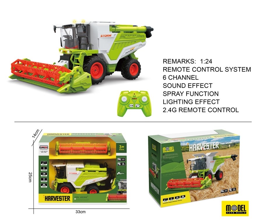 Inspirisan pravim poljoprivrednim mašinama, ovaj kombajn na daljinsko upravljanje omogućava mališanima da upravljaju žetvom i uživaju u uzbudljivoj igri sa realističnim svetlosnim, zvučnim i sprej efektima.