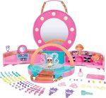 Igra u punom salonu je interaktivna: pravi različite uzorke sa šarenim perlicama, koristi veliko ogledalo za stilizovanje sebe, a perlice čuvaj u slatkim fiokama uključenim u set. Salon možeš i dekorisati po svom ukusu.
