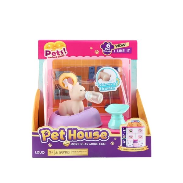 Ova mala kućica dolazi sa slatkim štenetom i njegovim krevetićem, pružajući deci realističnu i zabavnu igru. Set uključuje flašicu, a kada štene popije mleko, realno urinira, čineći igru još autentičnijom.