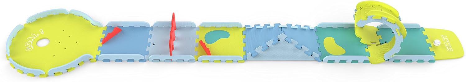 Kada se složi, podloga može dostići dimenzije 300 x 30 cm ili 120 x 150 cm, u zavisnosti od rasporeda delova. Teren uključuje luping, piramidu i veliki zid, što igru čini uzbudljivom i raznovrsnom.