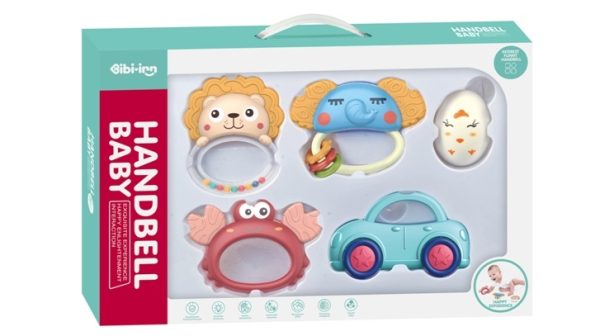 Presladak set od pet raznobojnih zvečki idealan je za najmlađe! Svaka zvečka ima drugačiji oblik, teksturu i zvuk, podstičući razvoj motorike, koordinacije i čula sluha. Napravljene su od bezbednih, kvalitetnih materijala prijatnih na dodir — savršene za prve bebine igre i istraživanja.