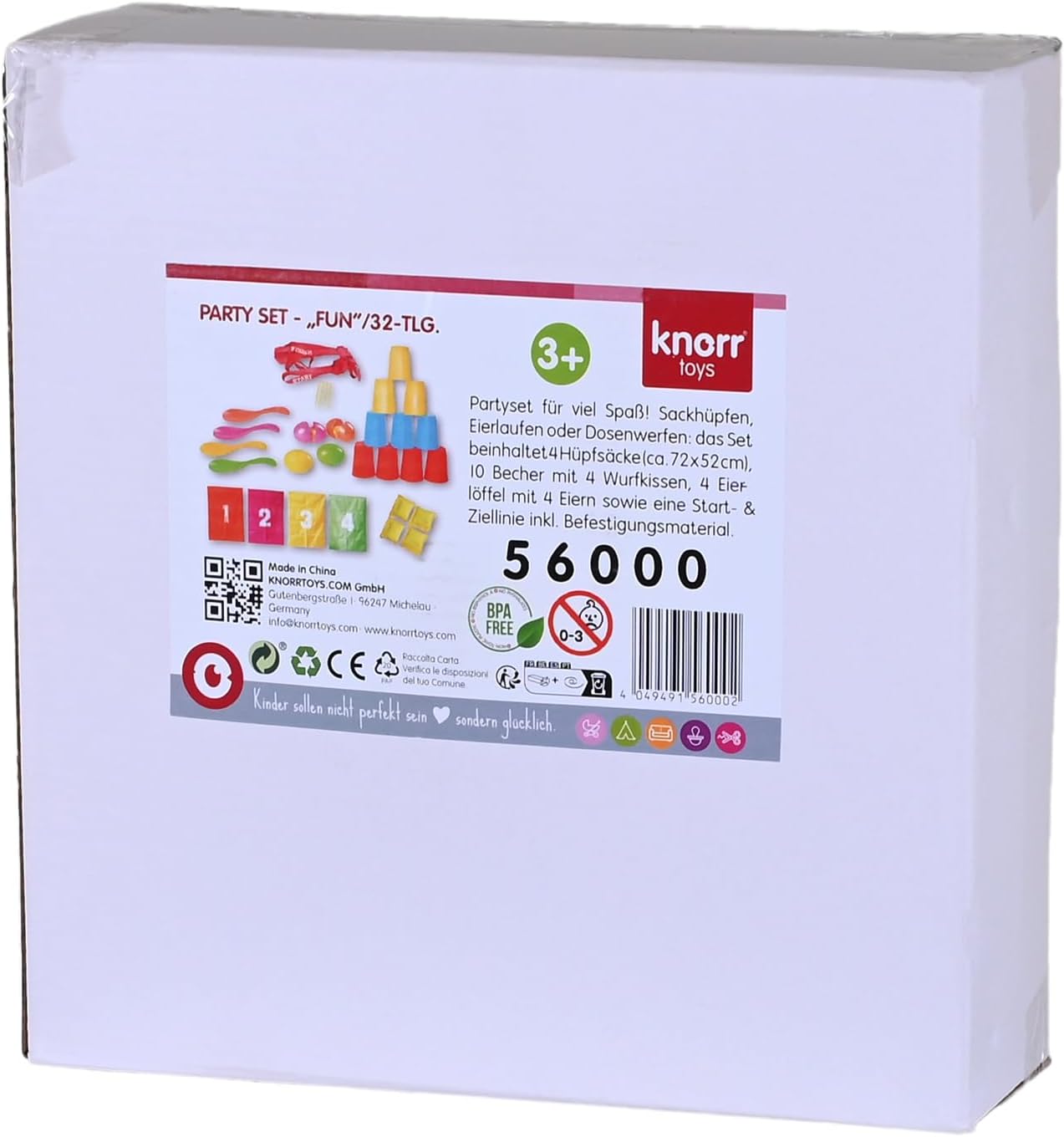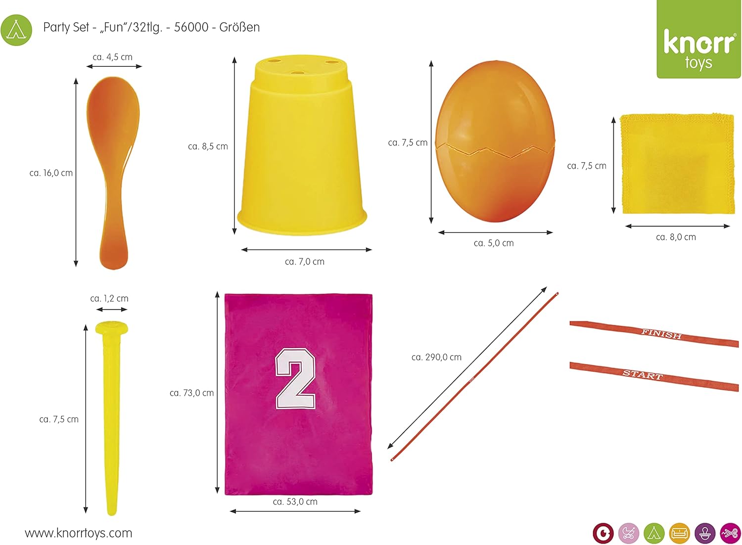 Set društvenih i motoričkih igara pruža deci raznovrsnu zabavu kroz aktivnosti poput skakanja u džakovima, nošenja jaja u kašičici gađanja čaša.