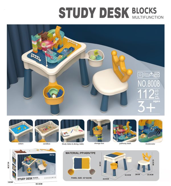 Praktičan i kreativni set koji spaja igru i učenje! Sto ima dvostranu radnu površinu – s jedne strane glatku ploču idealnu za crtanje, pisanje i kreativne aktivnosti, a s druge podlogu za slaganje kocki. Ispod radne ploče nalazi se prostor za odlaganje kocki i dodataka. U kompletu dolazi i udobna stolica prilagođena deci, izrađena od kvalitetne i čvrste plastike.